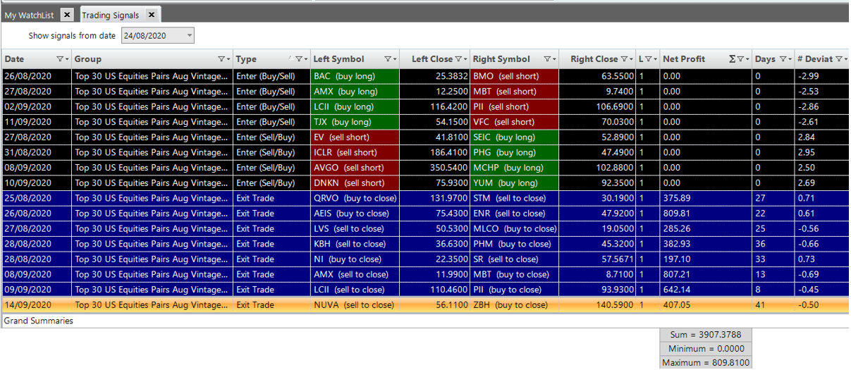 So here are the out-of-sample results of the exit signals and open trades of the August 2020 Vintage in from 24 August to 15 September 2020. These trades represent signals you could have traded live: